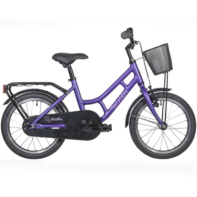 Winther 150 er en 16 tommer pigecykel i dansk design og god kvalitet. Stellet er fremstillet i let og rustfri aluminium. Cyklen har fodbremse og håndbremse, og den er uden gear, så den er sikker og nem at bruge for mindre børn. Denne børnecykel er udstyret med skærme, bagebærer, lukket kædeskærm og støtteben. Foran er der en lille fastmonteret kurv til legetøj eller en taske.