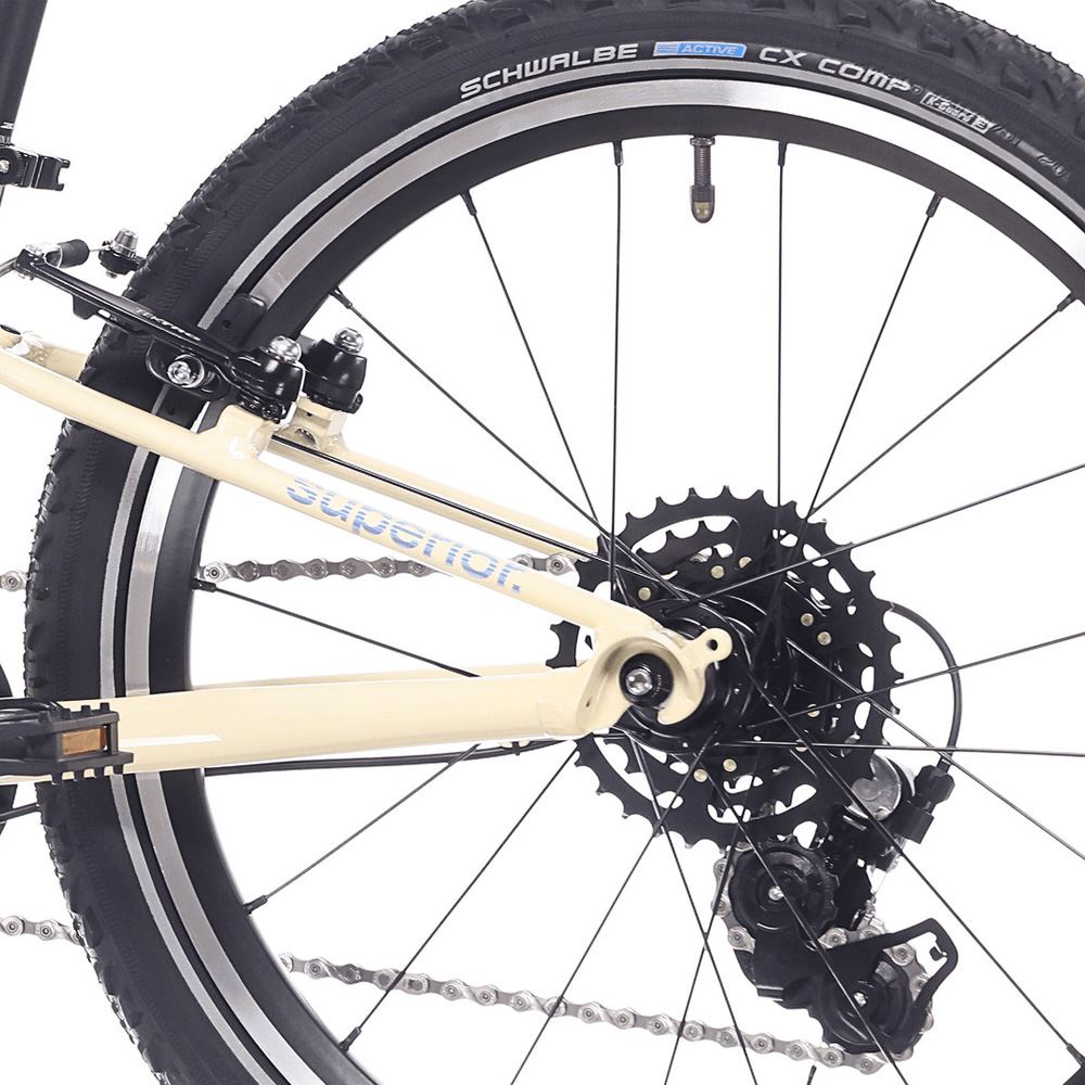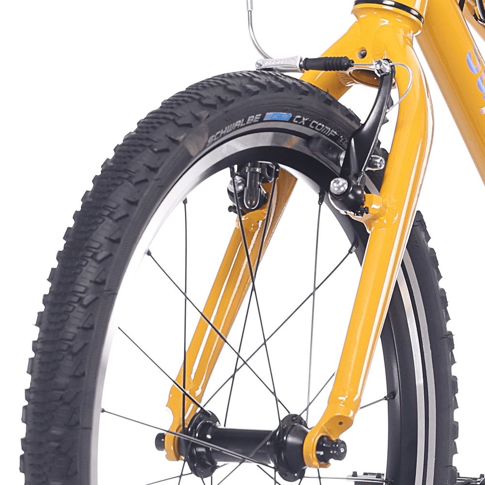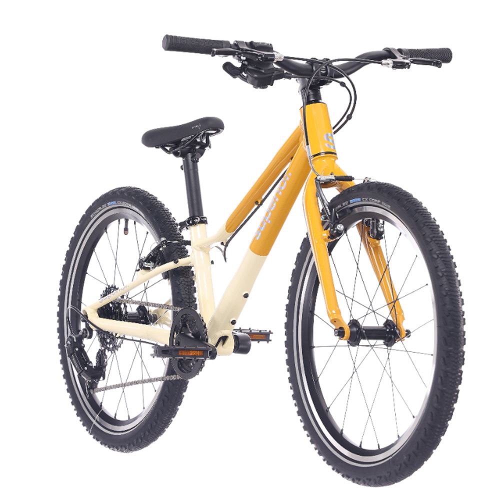 Forside / Cykler / Børnecykel / Drengecykel / 20" drengecykel ‹ › Beskrivelse Specifikationer Let 20" børne mountainbike. Superior FLY er en superlet 20" mountainbike til drenge og piger på ca. 100 - 120 cm. Stel, forgaffel og komponenter er i udsøgt kvalitet, så cyklen er både let og hurtig. Denne børne MTB har et let stel med buet overrør, så mindre børn har fuld kontrol over cyklen. De 7 Shimano gear skifter let med et drejegreb, som er specielt fremstillet til børn. Der er effektive og let betjente håndbremser på begge hjul. Cyklen har kraftige dæk, som giver godt greb i underlaget og ruller let på veje og stier. Superior FLY er det perfekte valg til skolekørsel og leg i fritiden. Cyklen leveres 100% samlet. Tilkøbt udstyr monteres gratis. Farve: Gloss Yellow Hjul: 20" STARS J19SZ Stelstørrelse: 9" Anbefalet personhøjde: 100-120 cm Stelmateriale: 6061 T6 Double Butted aluminum Forgaffel: 6061 T6 aluminium Dæk: Schwalbe CX Comp, KevlarGuard, 20x1.75" Kranksæt: ONE Sport, Alloy, 127mm, 28T Geargreb: Microshift 1x7 Bagskifter: Shimano Tourney TY200 Kassette: Shimano HG200, 12-32T Kæde: KMC Z8 Bremser: Saccon Junior, V-Brake Pedaler: Marwi SP-202 Sadel: Selle Royal Junior Varenr.: 801.2026.20002 Gratis fragt:Gratis fragt ved køb over kr. 349- (Gælder kun udstyr) Levering:Leveringstid 2-8 hverdage, hvis varen er på lager i butik Returret: 14 dage Reklamation:2 år Sikkerhed:Medlem af Danske Cykelhandlere Brug for hjælp?Skriv endelig til os, hvis du har spørgmål til denne vare 20" Superior FLY.Børne MTB 3999,- Tilvælg udstyr Lås Skærme Støtteben Gratis eftersyn Abus YWS Wide 329,00,- TilføjFjernIkke på lager 20/24" Rowdy sæt 249,00,- TilføjFjernIkke på lager 20" støtteben 129,00,- TilføjFjernIkke på lager Levering Click & Collect På lager online 100% køreklar - leveres direkte til døren Afhent gratis i én af vores 13 butikker 5-stjernet & certificerede værksteder Del dit køb op i 4 - 24 betalinger På lager Lås Ingen Abus YWS Wide (329,00) Skærme Ingen 20/24" Rowdy sæt (249,00) Støtteben Ingen 20" støtteben (129,00) 20" Superior FLY. DKK På lager Leveringstid 2-8 hverdage, hvis varen er på lager i butik superior 999