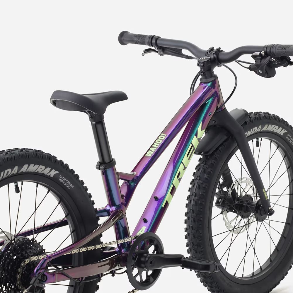 Trek Wahoo Trail er en børne mountainbike i høj kvalitet. Cyklen har 20" hjul og passer til 6-8 årige børn på ca. 115-135 cm. Stellet er fremstillet i let aluminium, og forgaflen er i carbon. Cyklens design giver god kontrol og gør det nem at komme af og på.
