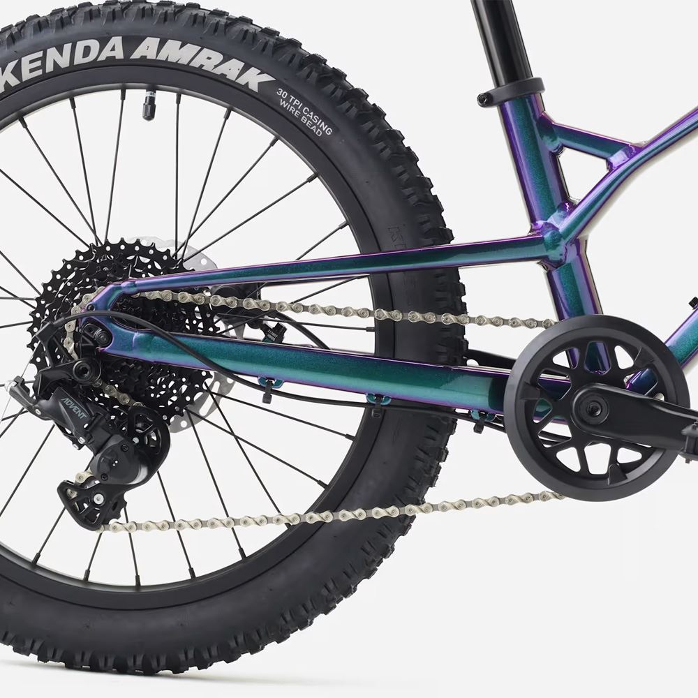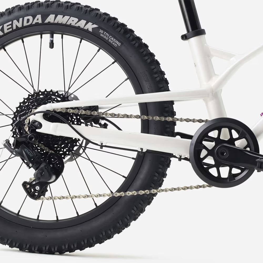 Denne børnecykel er 1x9 gear med stor spredning, så man kan køre overalt på veje og stier i skoven. Hydrauliske skivebremser giver effektive opbremsninger i både vådt og tørt føre. Dækkene er i størrelsen 20x2.4", som giver ekstra godt greb i underlaget og gør det nemt at komme frem i ujævnt terræn.