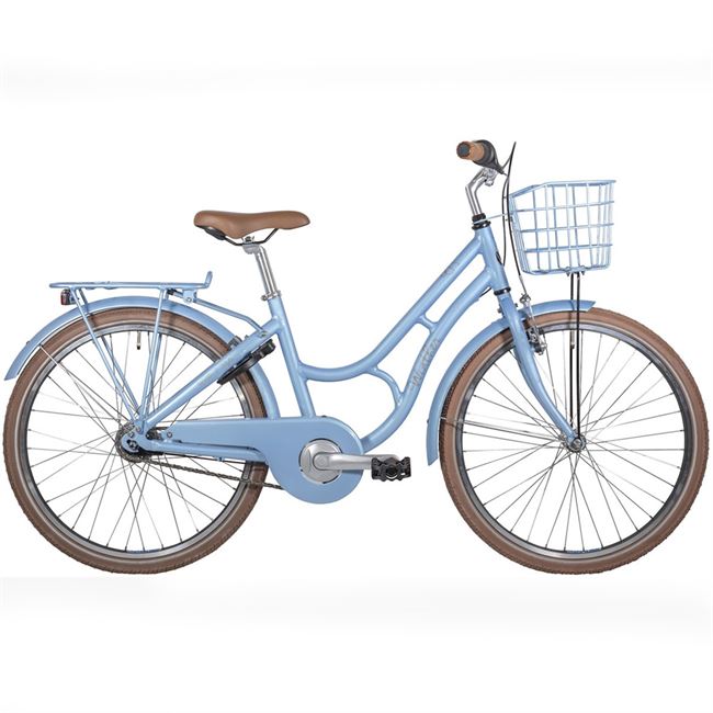 Winther G-Style er en 24" pigecykel i klassisk stil med en komfortabel kørestilling. Stellet er fremstillet i aluminium. Cyklen har 7 indvendige gear, fodbremse og håndbremse. Foran er der en rummelig fastmonteret cykelkurv. Cyklen leveres 100% samlet med godkendt lås, baglygte, forstærkede dæk og bagagebærer med lygte. Udstyret er i samme flotte blå farve som stellet.