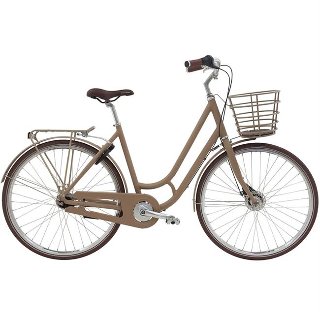 Cyklen er udstyret med 7 indvendige gear, som kræver minimal vedligeholdelse og gør det nemt at skifte gear – selv når du holder stille. De effektive bremser sørger for sikker og stabil opbremsning i al slags vejr, hvilket gør cyklen ideel til daglig brug året rundt. Foran har cyklen en rummelig og praktisk kurv til din taske.
