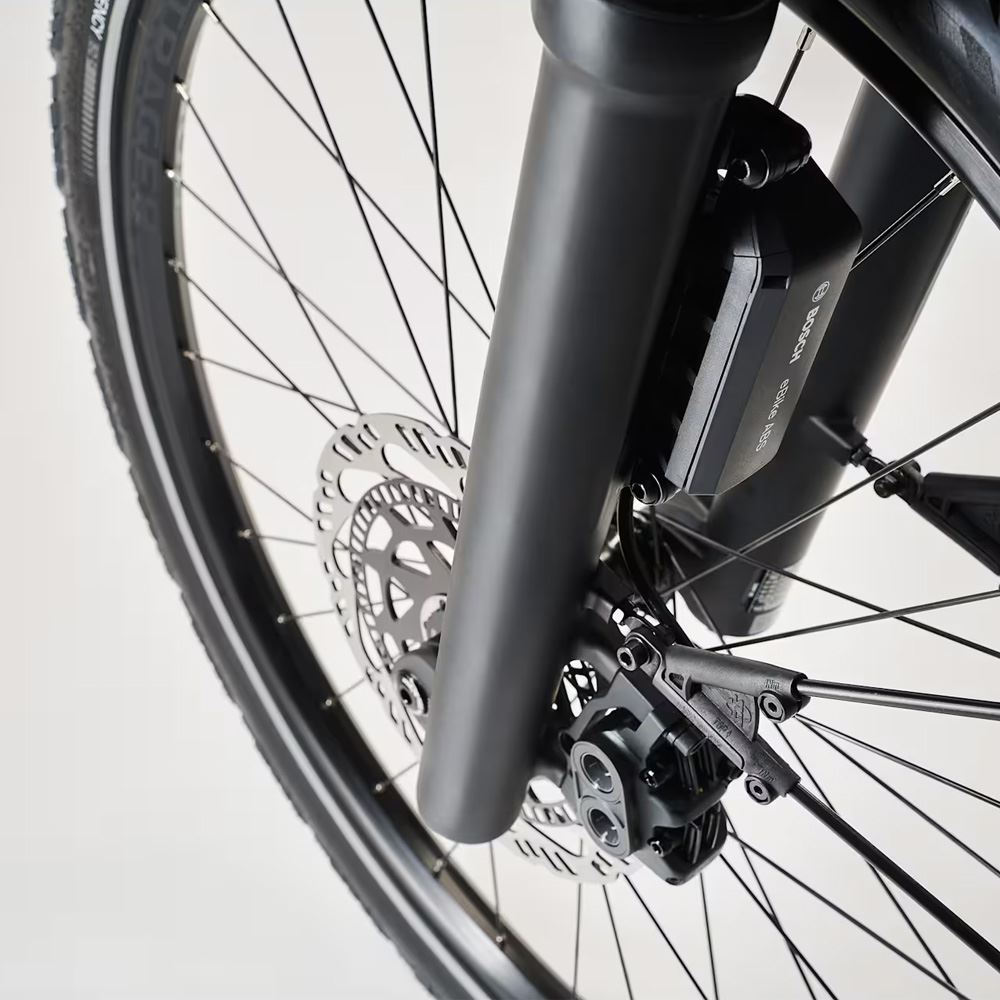 Gates remtræk i carbon sikrer lav vægt, nem vedligeholdelse, lang levetid, og man slipper for olien. Effektive hydrauliske skivebremser med Bosch ABS i forhjulet forhindrer at det låser selv på våde veje, grus eller ved pludselige opbremsninger ved 45 km/t. De brede Schwalbe Super Moto-X dæk med refleksstriber og GreenGuard-punkteringsbeskyttelse giver dig masser af greb og stabilitet – især vigtigt, når du kører 45 km/t. Samtidig øger de synligheden i trafikken og mindsker risikoen for punkteringer, så du slipper for unødige stop.