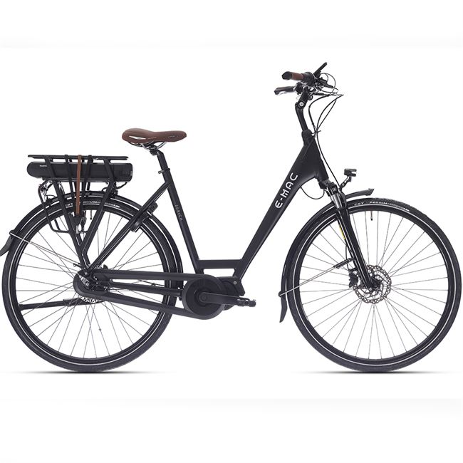 Forside / Cykler / Elcykel / Elcykel tilbud ‹ › Beskrivelse Specifikationer E-Mac elcykel med Shimano-motor. E-Mac Zürich er en elcykel i god kvalitet med et nordisk, stilrent design. Cyklen har en komfortabel og oprejst kørestilling, der giver overblik og kontrol på cykelturen. Det lavt designede stel gør det nemt at stige på og af cyklen. Forgaflen har affjedring, som giver ekstra komfort på ujævne veje. Denne elcykel har 7 indvendige gear. De hydraulisk skivebremser fra Shimano giver effektiv nedbremsning og fuld kontrol under såvel våde som tørre forhold. Sadel og håndtag er ergonomisk designet, og styr/frempind kan justeres både i højde og vinkel. Bagagebæreren er AVS-kompatibel, så man hurtigt kan klikke kurve og tasker på og af. Cyklen er udstyret med en godkendt lås, som kan kombineres med en kædelås. Der er desuden lygter, et solidt støtteben og dæk med effektiv beskyttelse mod punkteringer. Kæden er beskyttet af en fuldt dækkende kædeskærm, som reducerer behovet for rengøring og smøring. E-Mac Zürich er udstyret med en solid Shimano centermotor med 40 Nm, tilstrækkeligt til daglig kørsel på almindelig vej med moderate bakker. Batteriet på 504 Wh giver en rækkevidde op til 165 km* under optimale forhold. Man vælger mellem 3 niveauer af assistance samt gå-assistance, hvor motoren hjælper ved lav hastighed, mens man går med cyklen. E-Mac Zürich anbefales til daglig brug, herunder pendling, indkøb og cykelture i fritiden. Vi leverer cyklen fuldt samlet og klar til den første cykeltur på landevejen. Stelmateriale: Aluminium Forgaffel: SR Suntour med affjedring Farve: Mat sort Gear: 7 indvendige Shimano Nexus Bremser: Shimano MT200 hydrauliske skivebremser Lås: Godkendt AXA Solid Plus, kompatibel med kædelås Forlygte: AXA Blueline 30 lux Baglygte: AXA Blueline Dæk: 700x38 mm CST Expedium Ampero med forstærkning Sadel: Selle Royal Sfera Bagagebærer: Atran E-Max med AVS Pedaler: Marwi SP-823 Støtteben: Atran Velo Rex Kædeskærm: Fuldt dækkende Motor: Shimano STEPS DU-E5000, 25 km/t, 40 Nm Batteri: 504 Wh Rækkevidde: Op til 165 km* Display: Shimano SC-E6100 Assistance: 3 niveauer Walk-assist: Ja Oplader: 36V / 2 Ah Vægt med batteri: Ca. 23.8 kg Brugervejledning *Rækkevidde er bl.a. afhængig af den valgte assistance, din egen ydelse, vind, bakker, temperatur, vægt og batteriets alder. Varenr.: 828.2025.78022 Gratis fragt:Gratis fragt ved køb over kr. 349- (Gælder kun udstyr) Levering:Leveringstid 2-8 hverdage, hvis varen er på lager i butik Returret: 14 dage Reklamation:2 år Sikkerhed:Medlem af Danske Cykelhandlere Brug for hjælp?Skriv endelig til os, hvis du har spørgmål til denne vare E-Mac Zürich - 54 cmElcykel 19999,- Tilvælg udstyr Service aftale Ekstra lås AVS kurv bagpå Kurv adapter (Klickfix) Kurv foran Cykelspejl Gratis eftersyn Serviceaftale til elcykel 1.299,00,- TilføjFjernIkke på lager Abus IvyTex 85 cm 329,00,- TilføjFjernIkke på lager Atran AVS Daily M 399,00,- TilføjFjernIkke på lager AVS Daily Large 449,00,- TilføjFjernIkke på lager Atran AVS Epic Multi 499,00,- TilføjFjernIkke på lager Adapter elcykel 449,00,- TilføjFjernIkke på lager Klickfix Uni 349,00,- TilføjFjernIkke på lager Klickfix Twist 649,00,- TilføjFjernIkke på lager Klickfix Skagen Black 749,00,- TilføjFjernIkke på lager Bike Attitude spejl 199,00,- TilføjFjernIkke på lager Levering Click & Collect 100% køreklar - leveres direkte til døren Afhent gratis i én af vores 13 butikker 5-stjernet & certificerede værksteder Delbetaling via Sparxpres Del dit køb op i 4, 6, 8 eller 10 betalinger Ikke på lager Service aftale Ingen Serviceaftale til elcykel (1.299,00) Ekstra lås Ingen Abus IvyTex 85 cm (329,00) AVS kurv bagpå Ingen Atran AVS Daily M (399,00) AVS Daily Large (449,00) Atran AVS Epic Multi (499,00) Kurv adapter (Klickfix) Ingen Adapter elcykel (449,00) Kurv foran Ingen Klickfix Uni (349,00) Klickfix Twist (649,00) Klickfix Skagen Black (749,00) Cykelspejl Ingen Bike Attitude spejl (199,00) E-Mac Zürich - 54 cm DKK Ikke på lager Leveringstid 2-8 hverdage, hvis varen er på lager i butik e-mac 0