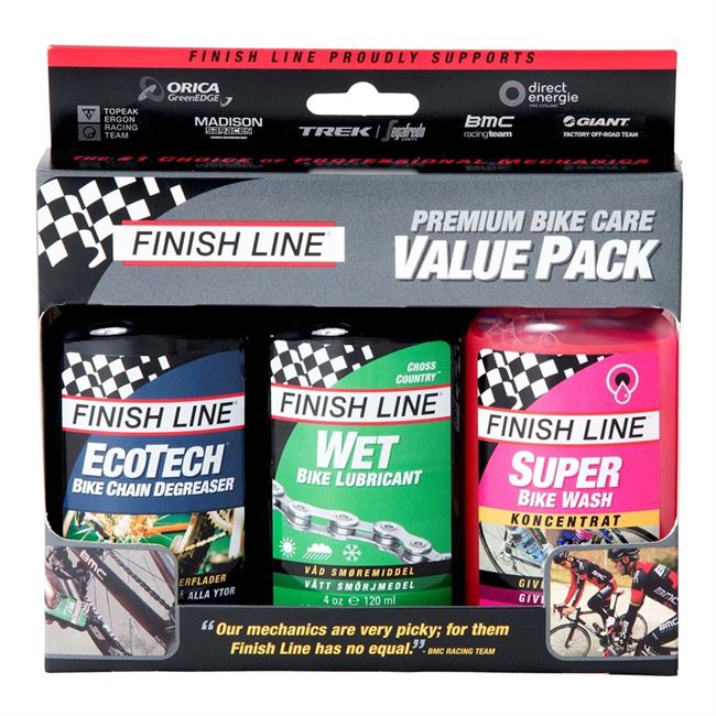 Finish Line Value Pack Wet er et komplet sæt smøre, rense og vaskemiddel til din cykel.