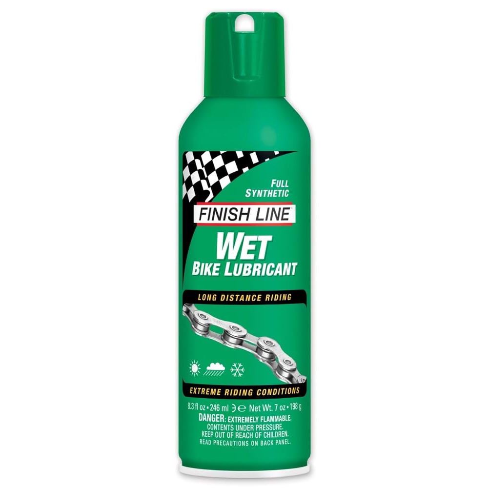Finish Line Wet Lube kædeolie er en cykelolie til vådt vejr. Skal du ud på lange cykelture, hvor vejret og terrænet er vådt og mudret, er denne kædeolie et perfekt valg. Produktet er fremstillet af syntetiske olier med høj viskositet, specielle polymerer og friktionsmodificerende ingredienser.