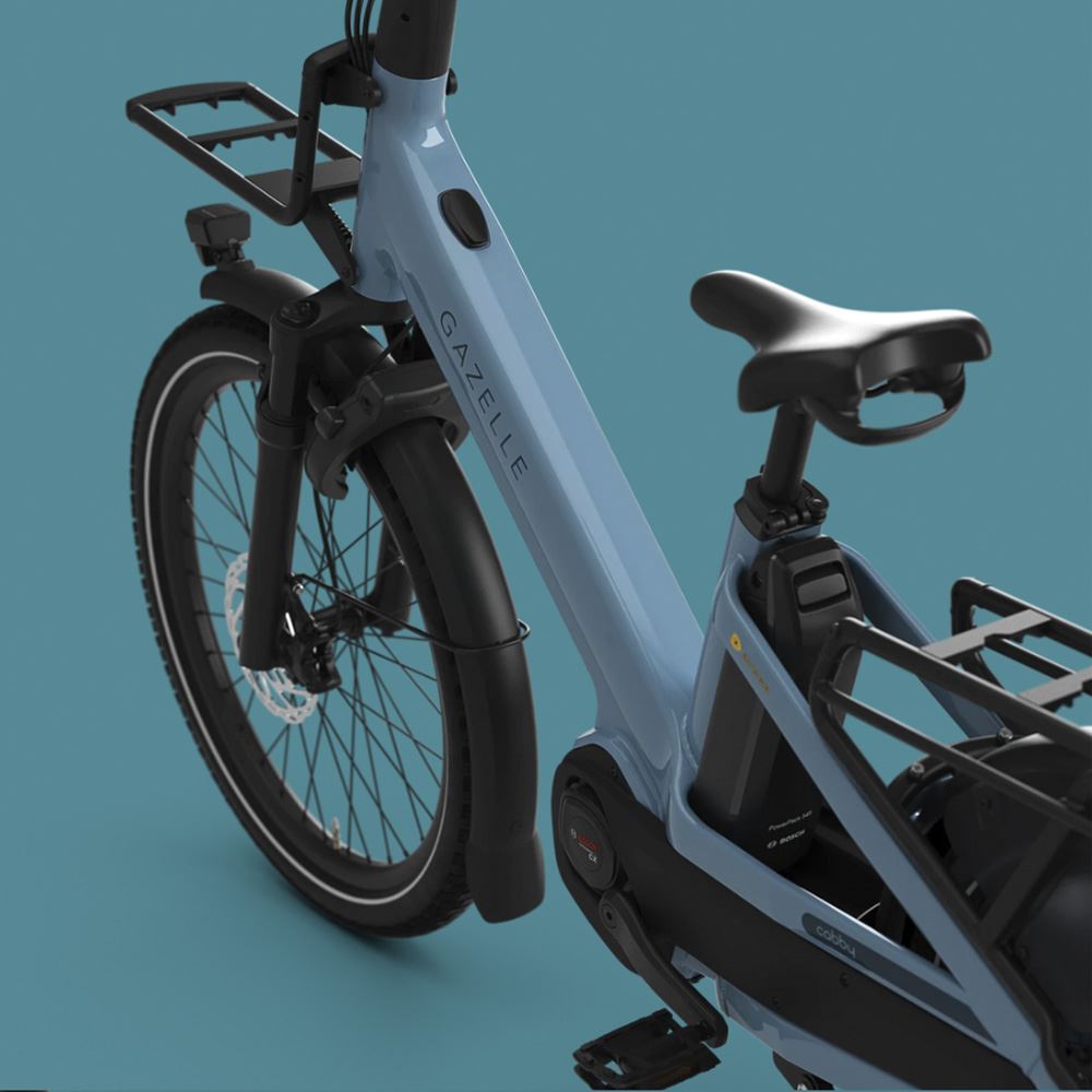 Cyklen har en stærk Bosch Performance Line CX centermotor med 85 Nm. Batteriet fås i 3 størrelser: 400 Wh, 545 Wh og 800 Wh. Der medfølger en Bosch 4A oplader. Assistancen vælges fra et Kiox 300 farvedisplay, hvor man også kan aflæse køredata samt tænde/slukke for lyset. Bosch Smart System giver mulighed for at indstille motoren individuelt efter eget behov via en app på telefonen. Der er desuden tyverisikring og GPS sporingsservice via Gazelle Connect (1. år gratis). Et indbygget modul sikrer, at ladcyklen altid kan spores via GPS. Hvis ladcyklen begynder at bevæge sig, modtager man straks en meddelelse via Gazelle Connect-appen.