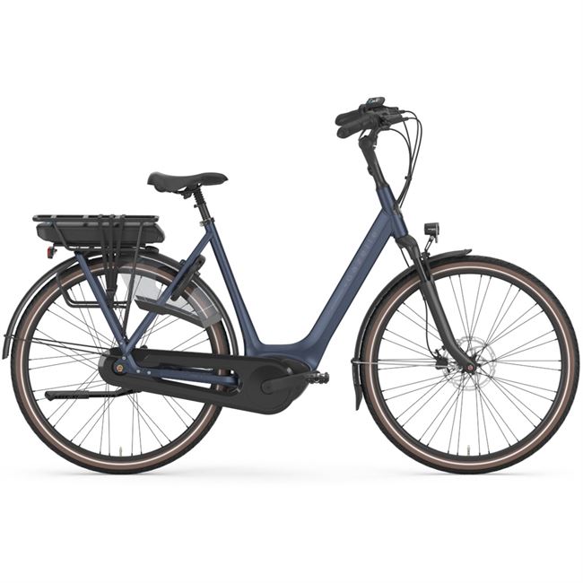 Det stabile aluminiumstel, den oprejste siddestilling og den lave, brede indstigning gør det nemt at komme af og på, og giver en afslappet, sikker køreoplevelse med godt overblik i trafikken. Kombineret med affjedret forgaffel og affjedret sadelpind glider du behageligt hen over brosten, kantsten og ujævn vej – perfekt til danske forhold.