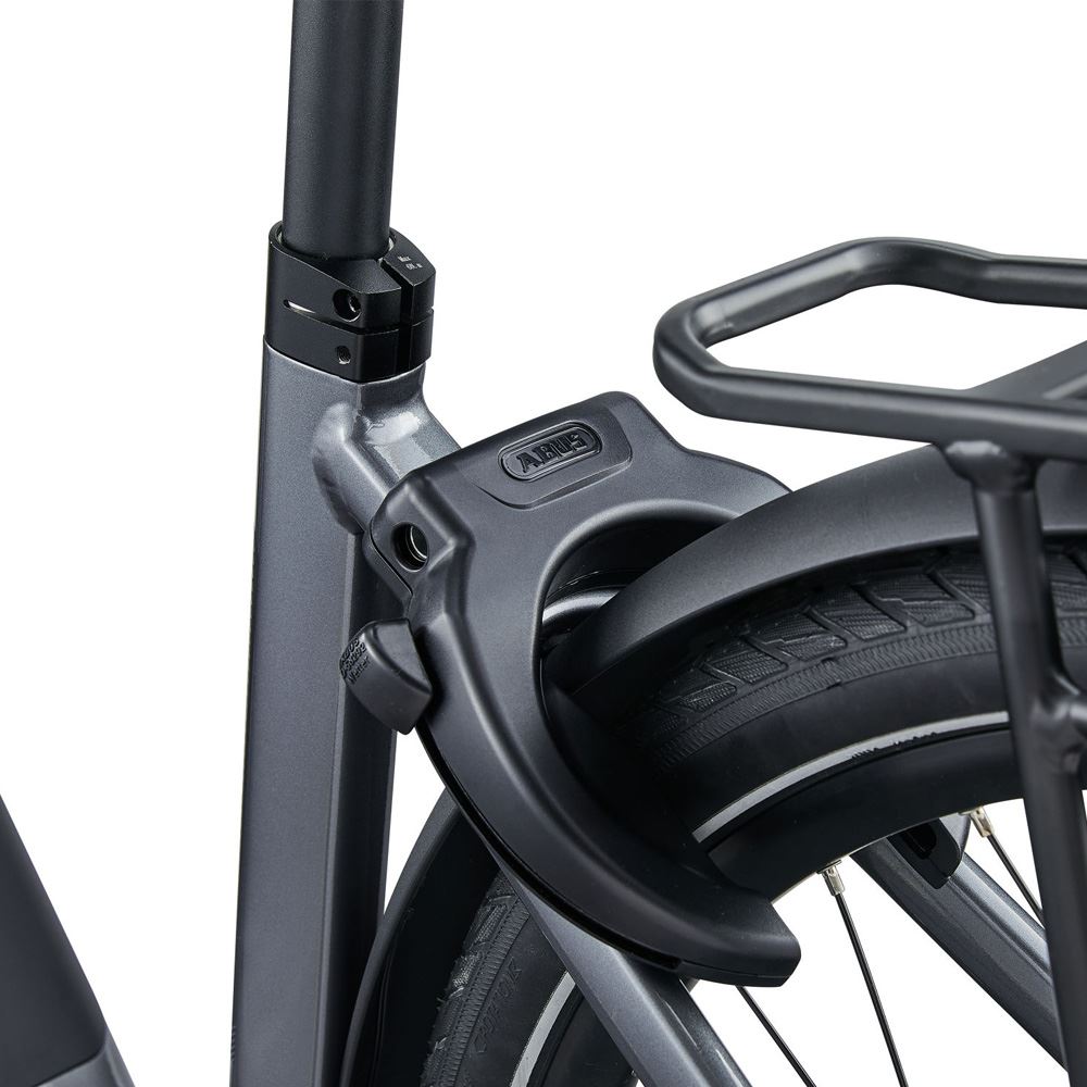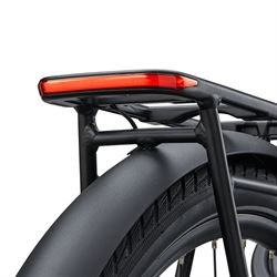 Denne elcykel har Integrerede sikkerhedsfunktioner, bl.a. E-lås, som deaktiverer motorassistancen og udløser en alarm, hvis cyklen flyttes, mens den er låst. Apple Find My-integrationen muliggør sporing og overvågning af cyklens position.