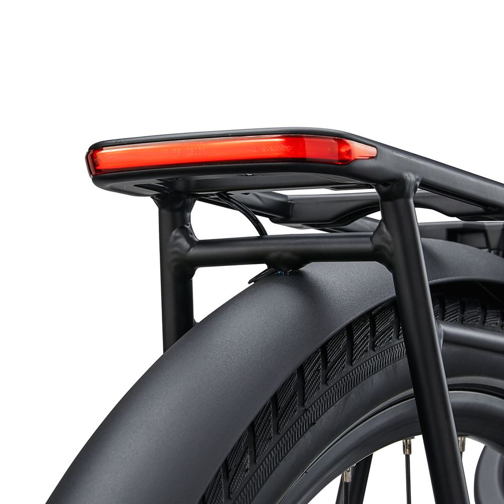 Denne elcykel har Integrerede sikkerhedsfunktioner, bl.a. E-lås, som deaktiverer motorassistancen og udløser en alarm, hvis cyklen flyttes, mens den er låst. Apple Find My-integrationen muliggør sporing og overvågning af cyklens position.