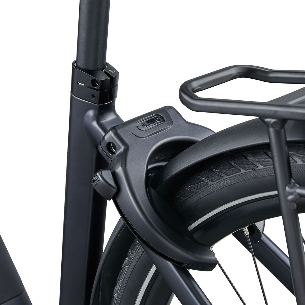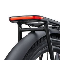 Denne elcykel har Integrerede sikkerhedsfunktioner, bl.a. E-lås, som deaktiverer motorassistancen og udløser en alarm, hvis cyklen flyttes, mens den er låst. Apple Find My-integrationen muliggør sporing og overvågning af cyklens position.