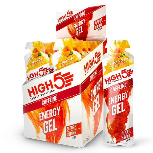 20 x High5 energigel med appelsinsmag og koffein.