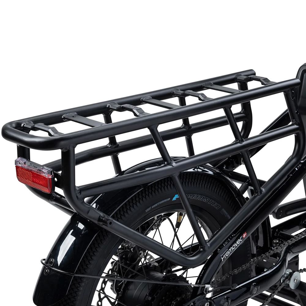 Den stærke Promovec baghjulsmotor giver en jævn og naturlig fremdrift med en behagelig “medvindseffekt”, som gør selv tunge læs lette at transportere . Kombinationen af kraft, komfort og smart design gør Humber Flex Longtail til et oplagt valg til både familier og erhverv.