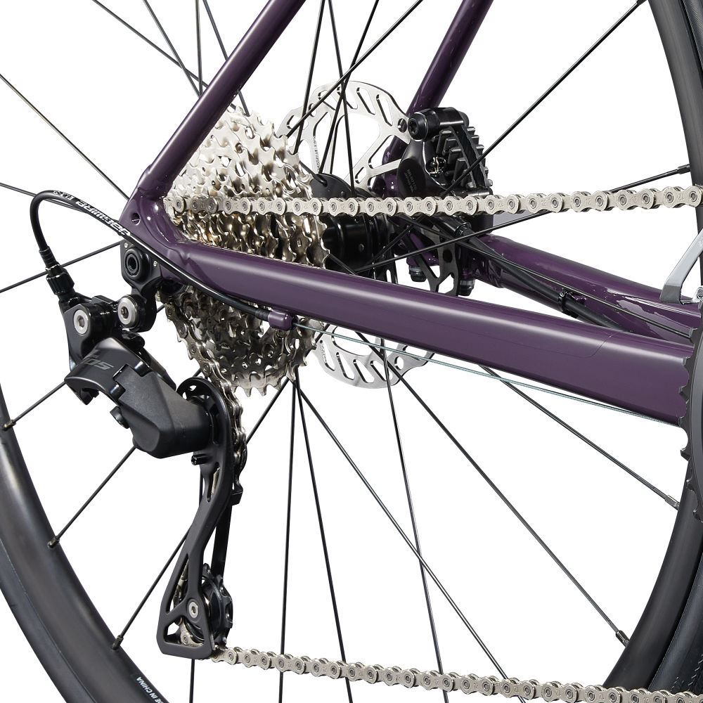 Denne dameracer har Shimano 105 gear og Shimano 105 hydrauliske skivebremser, som er effektive og sikre i både tørt og vådt vejr. Hjulene har 32 mm tubeless-dæk med godt vejgreb, lav rullemodstand og god komfort på alle vejtyper. Sadelstangen er fremstillet i kulfiber med D-Fuse design, som modvirker slag og stød fra ujævnheder i vejen.