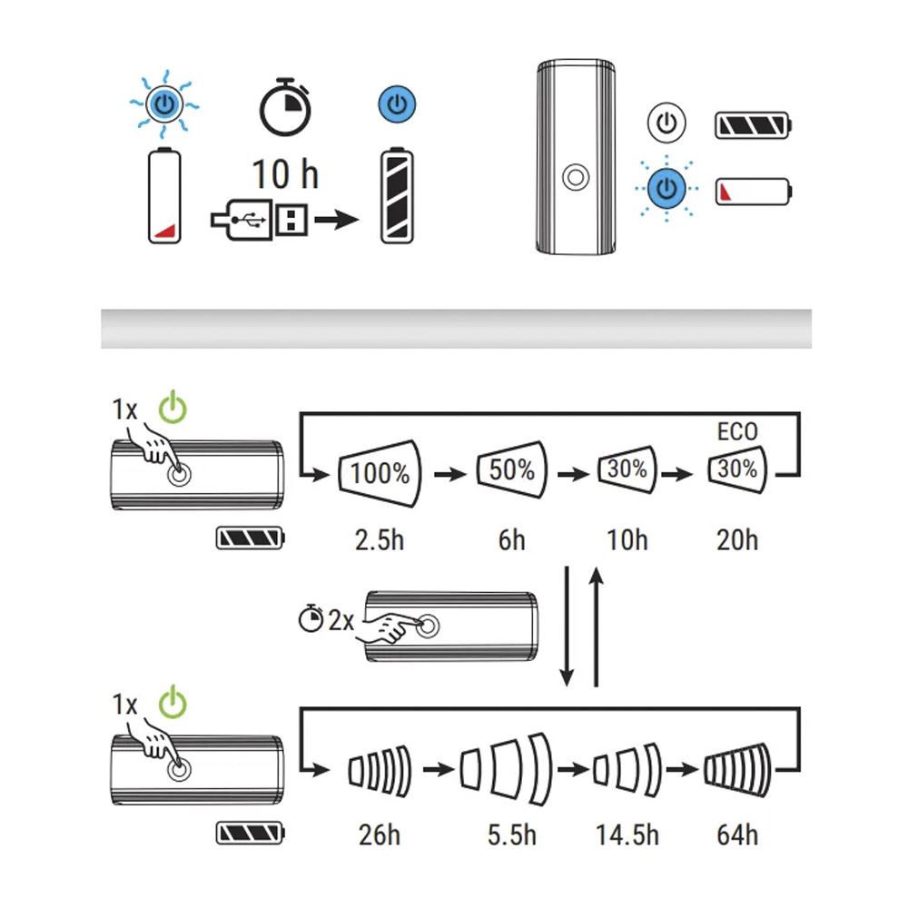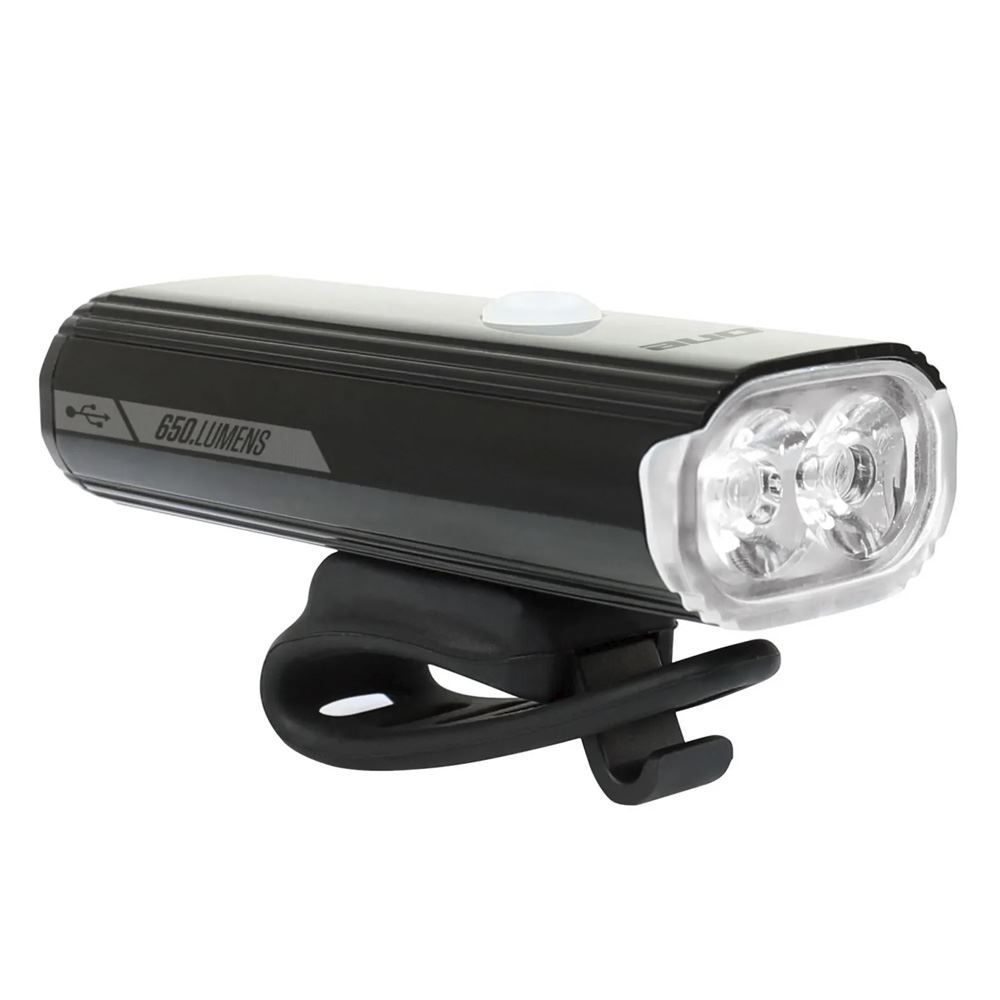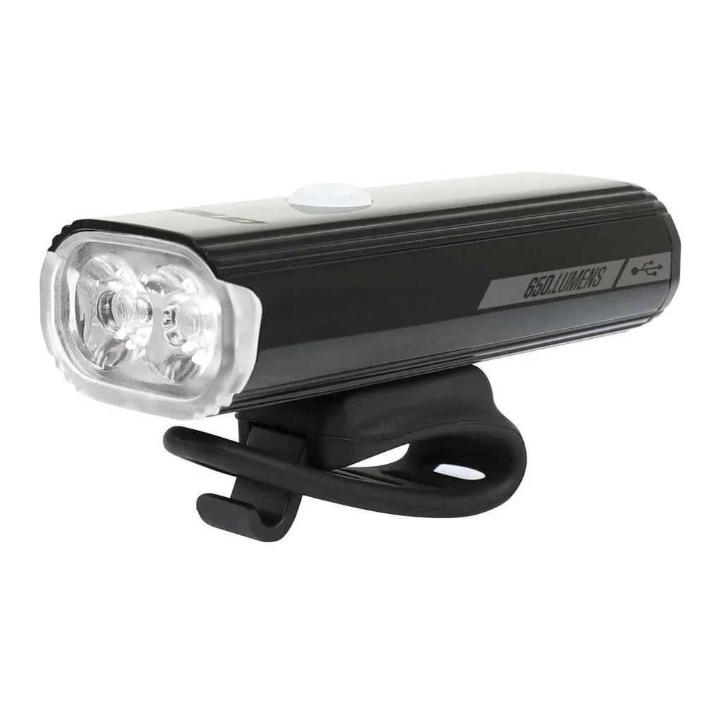 One F. Light 40 er en praktisk og effektiv forlygte, der kan lyse op til 650 lumen. Man kan vælge mellem flere indstillinger med blinkende eller konstant lys. Lygten skaber en god belysning og synlighed i mørket, og den ses også fra siden. Lyskeglen er designet, så den ikke blænder modkørende trafik. Med IPX5 vandtæthed kan lygten anvendes i al slags vejr.
