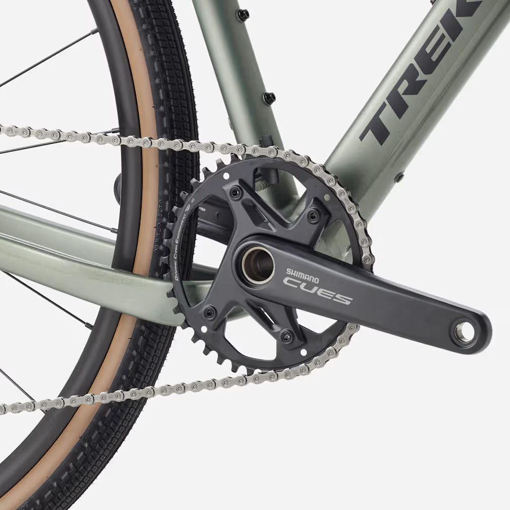 Forside / Cykler / Gravelbikes ‹ › Beskrivelse Specifikationer Trek gravelbike med Shimano CUES 1x11. Trek Checkpoint ALR 4 CUES er en god gravelbike til cykelture på landevej, grusvej og stier med blandet underlag. Cyklen er et godt valg til motion, træning og pendling til arbejde. Stellet er fremstillet i let aluminium med mange gevindstudser til ekstraudstyr som tasker, bagagebærer, skærme og 3 flaskeholdere. Forgaflen i kulfiber reducerer vægten og sikrer yderligere komfort på dårlige veje. Cyklen er udstyret med 1x11 Shimano CUES gear og hydrauliske skivebremser. Hjulene har 42 mm dæk, og der er plads til 50 mm dæk, hvis man ønsker endnu mere komfort og greb i underlaget. Trek Checkpoint ALR 4 CUES leveres 100% samlet. Stelmateriale: 300 Series Alpha aluminum Forgaffel: Carbon Disc Farver: Matte Keswick Green to Lichen - Living Coral Kranksæt: Shimano CUES FCU60301, 40T Krankboks: Praxis, T47 Geargreb: Shimano CUES U6030, 1x11 Bagskifter: Shimano CUES U8000 GS Kassette: Shimano CUES LG700, 11-50T Kæde: Shimano LG500 Bremser: Shimano CUES hydrauliske skivebremser Hjul: Bontrager Paradigm TLR Dæk: 700x42C Bontrager Girona Pro Styr: Bontrager Elite Gravel Frempind: Bontrager Elite Sadel: Verse Short Comp Sadelstang: Bontrager aluminium Pedaler: Ikke inklusiv Vægt: Ca. 10.4 kg Vægtgrænse: 125 kg inklusiv cykel, person og bagage Varenr.: 5332845 Gratis fragt:Gratis fragt ved køb over kr. 349- (Gælder kun udstyr) Levering:Leveringstid 2-8 hverdage, hvis varen er på lager i butik Returret: 14 dage Reklamation:2 år Sikkerhed:Medlem af Danske Cykelhandlere Brug for hjælp?Skriv endelig til os, hvis du har spørgmål til denne vare Trek Checkpoint ALR 4 CUES - Green MGravelbike 11999,- Tilvælg udstyr Elektrisk pumpe MTB pedaler Flat pedaler Flaskeholder Gratis eftersyn Elektrisk pumpe 699,00,- TilføjFjernIkke på lager Shimano PD-M520 389,00,- TilføjFjernIkke på lager Shimano XT M8100 919,00,- TilføjFjernIkke på lager Trek Line Comp 249,00,- TilføjFjernIkke på lager Trek Line Elite 399,00,- TilføjFjernIkke på lager Trek Elite 149,00,- TilføjFjernIkke på lager Bontrager Pro 399,00,- TilføjFjernIkke på lager Levering Click & Collect På lager online 100% køreklar - leveres direkte til døren Afhent gratis i én af vores 13 butikker 5-stjernet & certificerede værksteder Delbetaling via Sparxpres Del dit køb op i 4 - 24 betalinger På lager Elektrisk pumpe Ingen Elektrisk pumpe (699,00) MTB pedaler Ingen Shimano PD-M520 (389,00) Shimano XT M8100 (919,00) Flat pedaler Ingen Trek Line Comp (249,00) Trek Line Elite (399,00) Flaskeholder Ingen Trek Elite (149,00) Bontrager Pro (399,00) Trek Checkpoint ALR 4 CUES - Green M DKK På lager Leveringstid 2-8 hverdage, hvis varen er på lager i butik trek 10