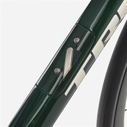 Domane SL 7 bygger på Treks 500 Series OCLV Carbon med IsoSpeed, der absorberer ujævnheder og reducerer træthed uden at koste unødig vægt. Stellet er gennemtænkt til hverdagsbrug og lange ture: Indvendig opbevaring til småting, ren indvendig kabelføring, et konisk kronrør for præcis styring samt skærmstudser. Flat Mount-standard og gennemgående aksler sikrer stivhed og stabilitet. Forgaflen er Domane SL Carbon med kulfiber-styrrør, indvendig kabelføring og skærmstudser.