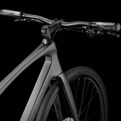 Stellet på Trek FX Sport SL 4 er fremstillet i OCLV carbon. Cyklen er udstyret med 1x10 Shimano CUES gear med stor spredning og hydrauliske skivebremser. De stærke hjul har 40 mm dæk med all-round mønster. Hjulene kan også køre med tubeless-dæk, hvis man foretrækker det.
